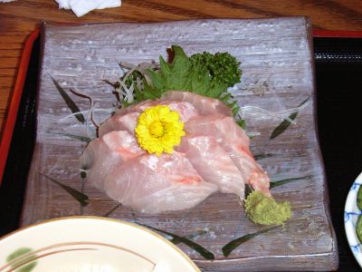 散策の後は、新鮮な金目鯛の刺身定食を食べました。うまーい、もう生きてて良かった、って感じです。(^o^)v |