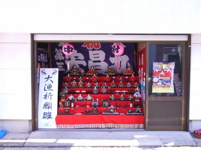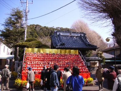 近くのお寺です。山門前にもお雛さまが…。(^o^;;; |