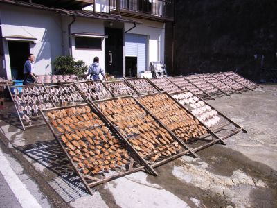 地元の漁師さんが、とれたばかりのお魚を干乾しにしていました。美味しそぉ〜。 |