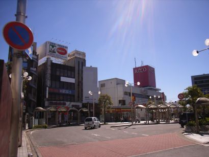 茂原駅前から見上げる青空。超快晴です。(^o^) |