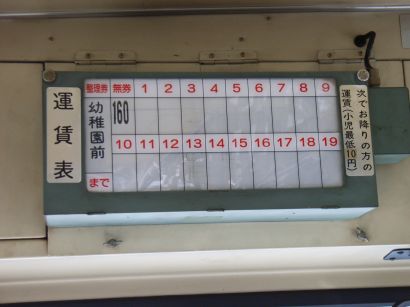 路線バスもレトロな感じ。運賃表が電光でないのを見たのは久し振りです。 |