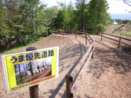 ↑時間を逆上って、マザー牧場です。「うま優先道路」なんてあるんですねぇ...。 |