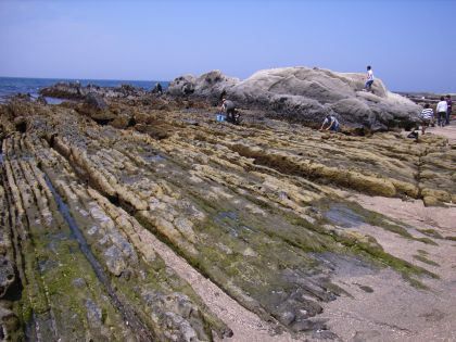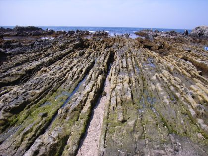 ↑これは、フラワーパークそばの海岸です。見事な「洗濯岩」ですねぇ...。 |