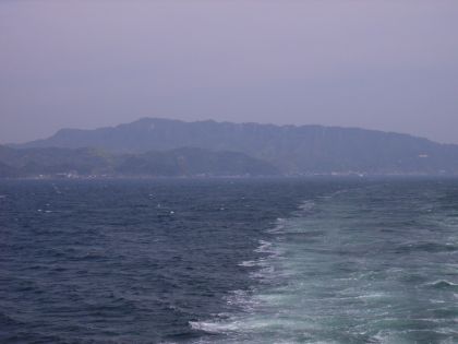 ↑この山は鋸山です。ギザギザが鋸(ノコギリ)の刃のようでしょう?帰路は、金谷港から東京湾フェリーで久里浜(横須賀)に渡りました。 |