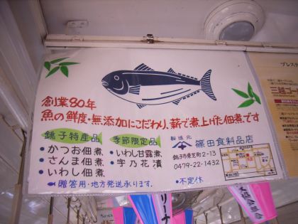 中々レトロな感じの商店街です。実はこの銚子の商店街、『恋する日曜日』という映画のロケ地となった場所です。ちょっとした“ロケ地巡り”をしてしまいました...(^^;;;。 |
