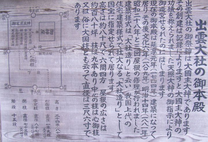 さてさて、下の写真は、出雲大社の本殿の解説版です。昨年末(2006.12末頃)に出雲を旅したときに発見(?)したものです。