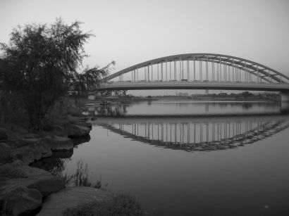 しかし、である。黄昏時にこの川辺に立ち向こう岸を見ると、なぜかいいようのない不気味さがおそってくる。その瞬間、向こう岸は「異界」となるのである…。高架橋を電車が走る。多くの人を乗せて境界を出入りしている。その瞬間、多くの魂の叫びが聴こえたような錯覚に陥った。